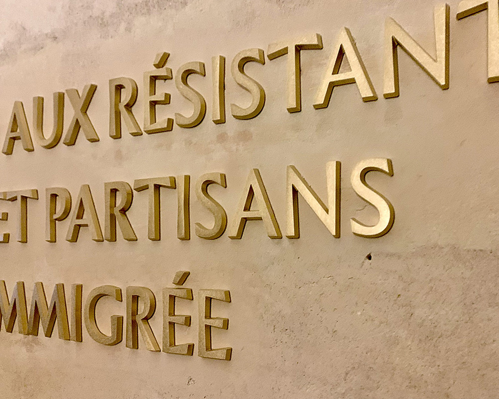 À l’occasion de l’entrée de Missak et Mélinée Manouchian au Panthéon, conseil typopgraphique, conception graphique et suivi de réalisation des lettres de bronze de l’inscription en hommage aux Vingt-trois de l'Affiche Rouge (FTP–MOI).