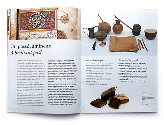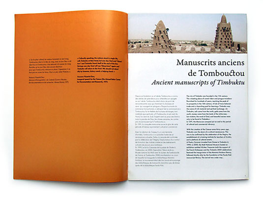 Brochure pour l’ONG Savama, protectrice du patrimoine écrit de Tombouctou, 2006