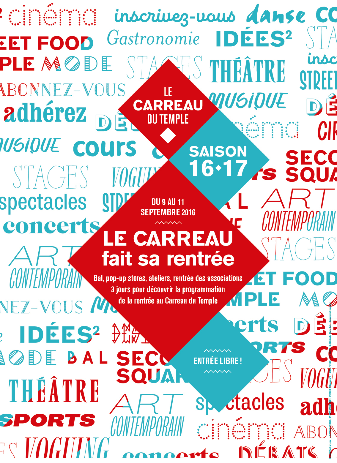 En 2016, le Carreau du temple me demande de réaliser plusieurs affiches pour leurs événements “Second Square”, obéissants à la charte graphique en place. Je propose néanmoins quelques aménagements dont un recentrage du logo.